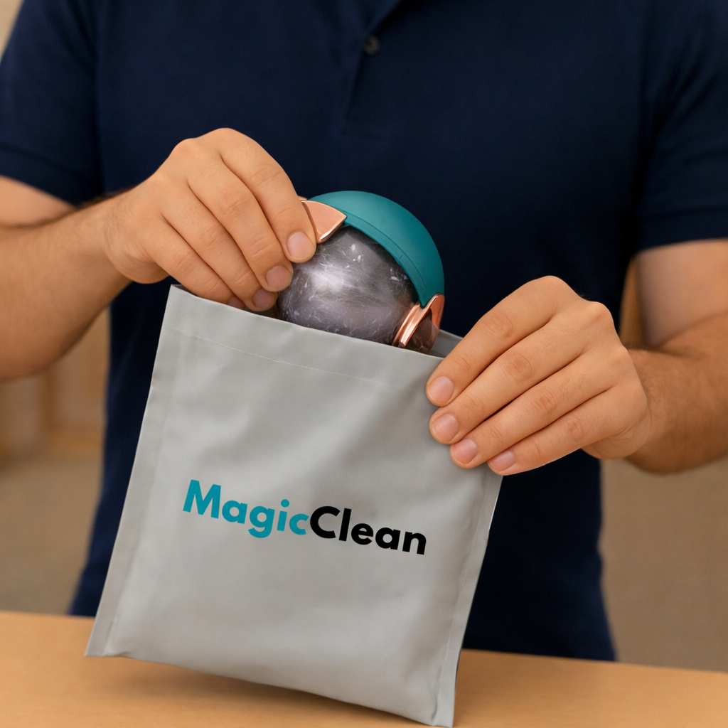 MagicClean Gracias a su superficie adhesiva reutilizable, el rodillo atrapa el pelo de mascotas al pasarlo sobre la ropa sin dañar la tela. Se lava con agua y queda listo para volver a usar, manteniendo tu ropa limpia todos los días.