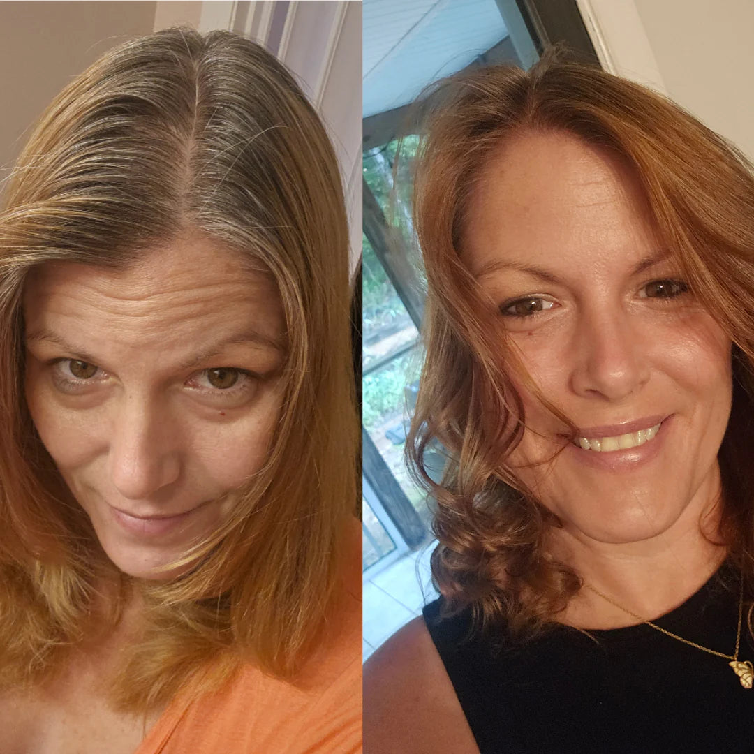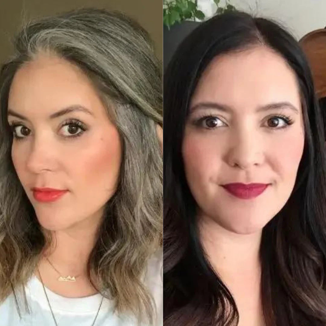 El color vuelve a aparecer de forma pareja y más intensa, dejando atrás el aspecto envejecido que dan las canas. Solo lavas el cabello y lo ves más oscuro, suave y revitalizado. Ideal para quienes buscan verse bien sin complicarse.